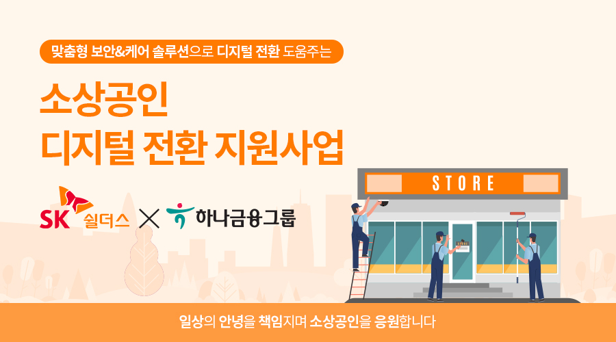 △ SK쉴더스가 하나금융그룹과 함께 맞춤형 보안&케어 솔루션으로 소상공인의 디지털 경쟁력 및 사업장 환경 개선을 돕는 ‘소상공인 디지털 전환 지원사업’을 16일부터 진행한다.