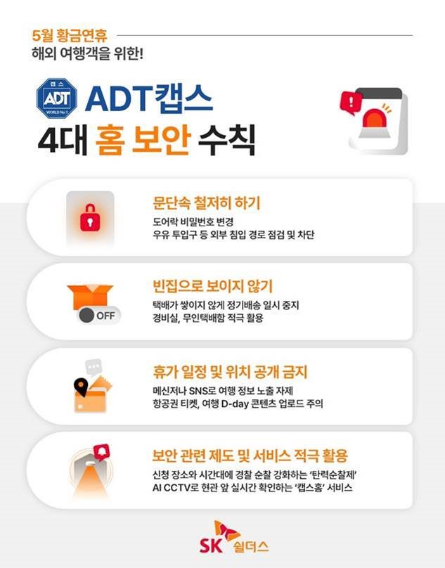 5월 해외여행 폭증에 빈집 주의보…SK쉴더스, ‘ADT캡스 4대 홈 보안 수칙’ 발표